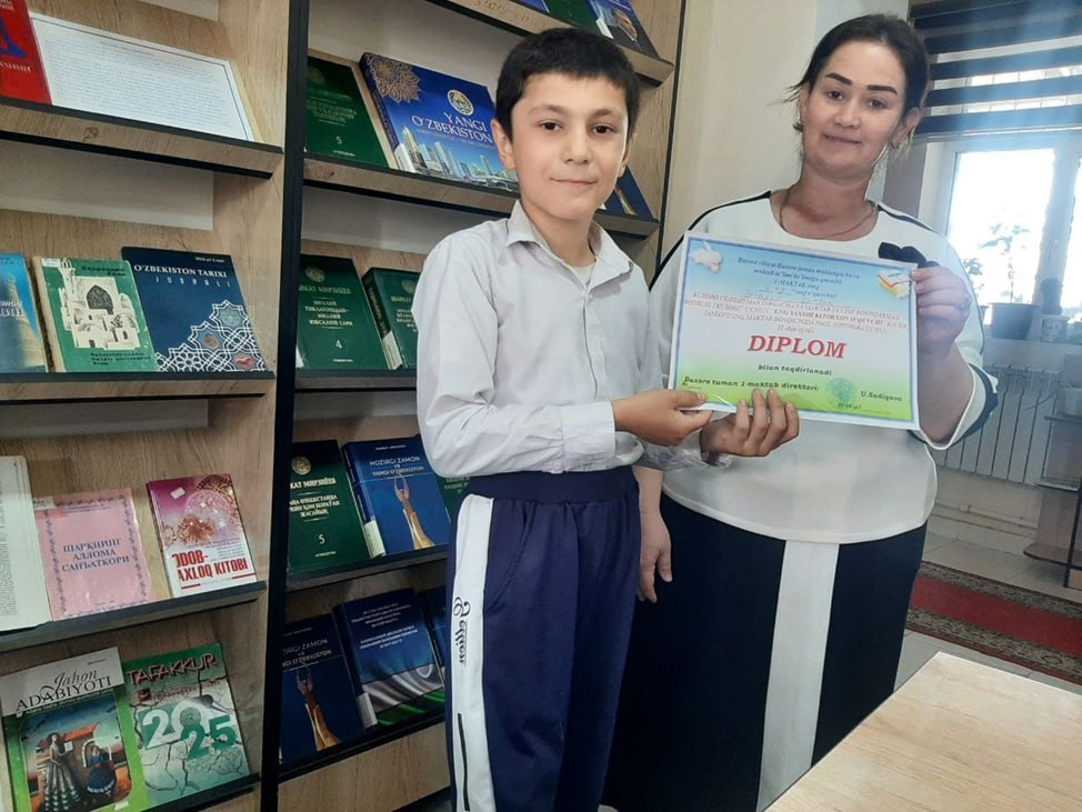 “Eng yaxshi kitobxon o‘quvchi”Yosh avlodning ma’naviy-intellektual salohiyatini yuksaltirish, o‘quvchilarda kitobxonlik madaniyatini rivojlantirish hamda mutolaa orqali tafakkur va dunyoqarashni boyitish maqsadida “Buxoro viloyati maktabgacha va maktab ta’limi boshqarmasi boshlig‘i kubogi” uchun “Eng yaxshi kitobxon o‘quvchi” tanloviga start berildi. Mazkur tanlov Buxoro tuman axborot kutubxona markazida «Kitobsevar millat» shiori ostida VI Respublika «Kitobxonlik haftaligi» doirasida1-son umumta’lim maktabining 3-4 sinf o’quvchilari o’rtasida o’tkazildi. Tanlovda I-O’rin: Muhammadiyeva Munisa, II- o’rin: Baxtiyorova Diyora, To’rayev Javlon, III-o’rin: Ismatullayev Abulfayzbek, Sobirova Muharramga berildi. O‘quvchilarning kitob o‘qishga bo‘lgan qiziqishini yanada oshirish, ularning madaniy saviyasini yuksaltirish, mustaqil fikrlash ko‘nikmalarini rivojlantirish hamda maktabdan tashqari ta’lim faoliyati samaradorligini kuchaytirishga xizmat qiladi.